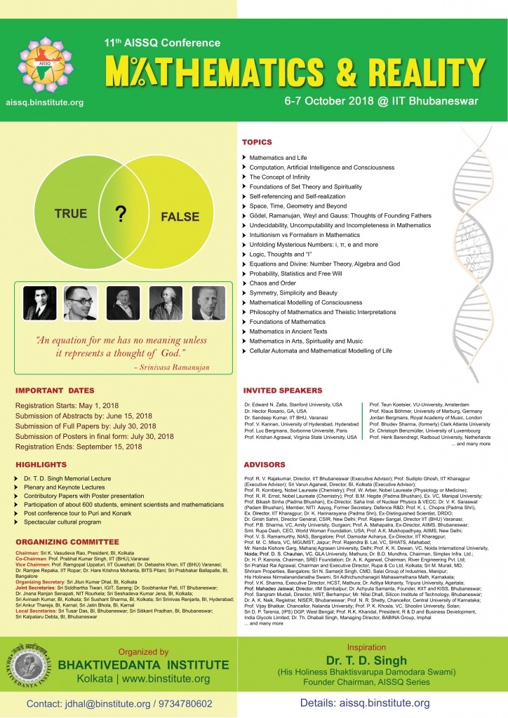 - Enable delegates to visualize deeper explorations of mathematics and thereby highlight the linkage of Science with philosophical and spiritual explorations of the reality