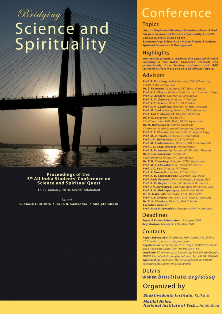 The conference’s main objective is to enthuse the young minds of India to delve into the subject of science keeping along the element of spirituality and: