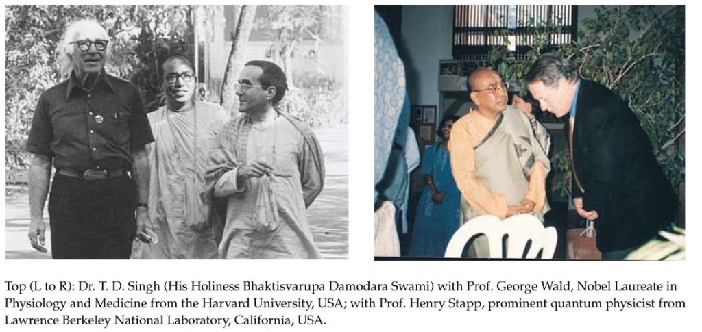 While in the USA, in 1970, he met his spiritual teacher, His Divine Grace A.C. Bhaktivedanta Swami Prabhupāda who belonged to the ancient Vaiṣṇava Vedanta lineage. Under his guidance, Dr. T.D. Singh began advanced studies in the philosophy of Vedanta. In 1974, Śrīla Prabhupāda founded the Bhaktivedanta Institute and appointed Dr. T. D. Singh as Director.